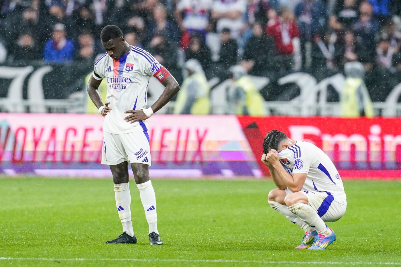 Le déluge qui s’abattait sur Décines-Charpieu ce dimanche lors de la défaite de l’OL face à Lens (1-2) est sans doute le meilleur résumé possible de la situation du club rhodanien, tout simplement en train de couler. Après une grosse période de turbulences fin 2024-début 2025, entre la rétrogradation en Ligue 2 prononcée à titre conservatoire par la DNCG, et le licenciement de Pierre Sage, les Gones avaient gagné un peu de répit avec l’arrivée de Paul Fonseca sur le banc. Rapidement interdit de zone technique, le technicien portugais avait tourné sa suspension en une force qui avait uni son groupe, selon ses propres dires. L’OL était alors revenu dans la course à la Ligue des champions, et pouvait prétendre à un très joli parcours en Ligue Europa. Mais depuis la défaite à Old Trafford au terme d’un scénario ubuesque, les Lyonnais n’y arrivent plus. Et ce n’est pas la victoire face aux faiblards Rennais qui a requinqué cet effectif.
