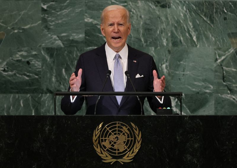 NATIONS UNIES (Reuters) - Le président américain Joe Biden a dénoncé mercredi, à la tribune de l'Assemblée générale des Nations unies, les menaces "irresponsables" de Vladimir Poutine sur un éventuel recours à l'arme nucléaire et accusé Moscou de violer les principes fondamentaux de la Charte de l'Onu.