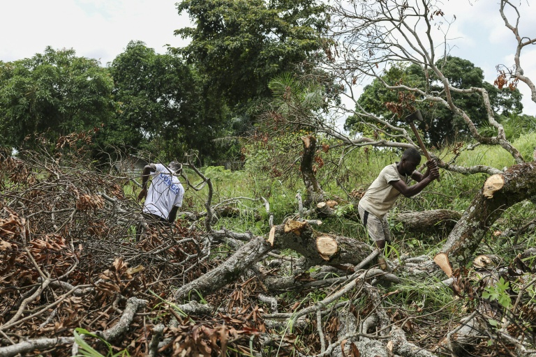 "Au Congo, il n'y a rien, il n'y a pas d'économie. On a des boulots mais on ne gagne rien", peste M. Miénagata, occupé à débiter une souche à coup de hache dans une parcelle voisine.