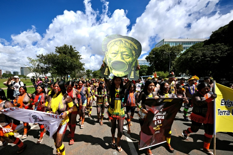 Des milliers de militants autochtones venus de tout le Brésil ont défilé mardi à Brasilia pour demander au gouvernement Lula d'accélérer la reconnaissance de leurs terres ancestrales, à six mois de l'élection présidentielle.