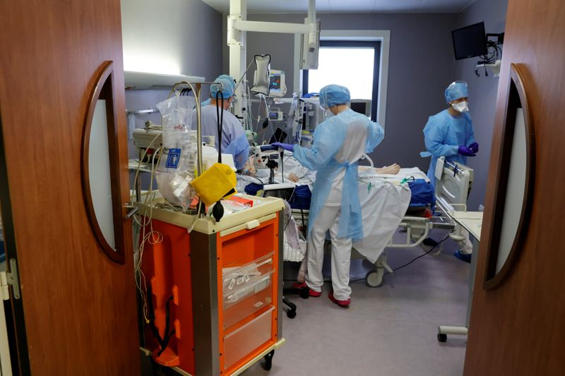 PARIS (Reuters) - Le nombre de personnes en réanimation et hospitalisées avec un diagnostic Covid-19 a fortement augmenté, selon des données publiées dimanche par Santé publique France, preuve que la pression de l'épidémie de coronavirus sur le système de santé français ne faiblit toujours pas.