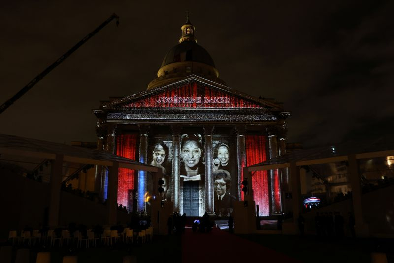 PARIS (Reuters) - L'artiste franco-américaine Joséphine Baker a fait mardi son entrée au Panthéon lors d'une cérémonie célébrant son statut d'icône jazz des années 1920 et son engagement au côté de la France libre et dans la lutte antiraciste, de "femme défendant le genre humain" selon les mots d'Emmanuel Macron.