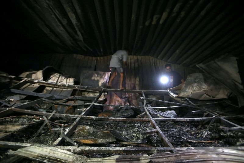 Un journaliste de Reuters a vu les secours extraire des corps carbonisés de l'hôpital Al Hussein, où des dizaines de patients ont été piégés par les flammes.