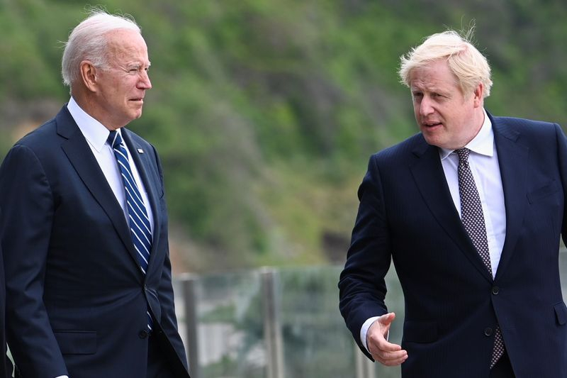 BAIE DE CARBIS, Angleterre (Reuters) - Le Premier ministre britannique Boris Johnson a décrit jeudi comme un "grand bol d'air frais" le président américain Joe Biden pour la volonté de ce dernier de travailler avec Londres sur un large éventail de questions, qu'il s'agisse d'environnement, de COVID-19 ou encore de sécurité.