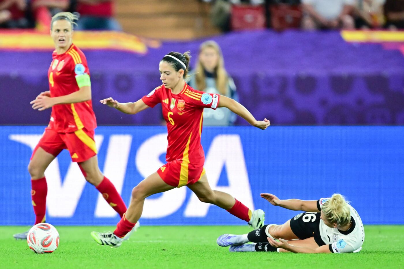 Dans le Letzigrund de Zürich, cette seconde demi-finale de l’Euro offrait au public une alléchante affiche entre l’Allemagne, tombeuse des Françaises en quarts, et l’Espagne, championne du monde en titre et facile victorieuse de ses cinq premiers matchs dans la compétition. Une rencontre disputée où les Espagnoles ont ultra-dominé dans la possession, et sont finalement sorties du bourbier allemand grâce à l’inévitable Bonmatí. La double-ballon d’Or en titre permet à la Roja de s’offrir une première finale d’Euro dans son histoire, et peut-être un premier graal européen face à l’Angleterre dimanche à Bâle.…