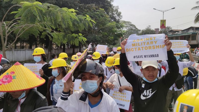 À Mandalay, la deuxième ville du pays, la police a tiré des balles en caoutchouc sur des ouvriers d'un chantier naval qui manifestaient et une personne a été légèrement blessée, montrent des images diffusées sur les réseaux sociaux.