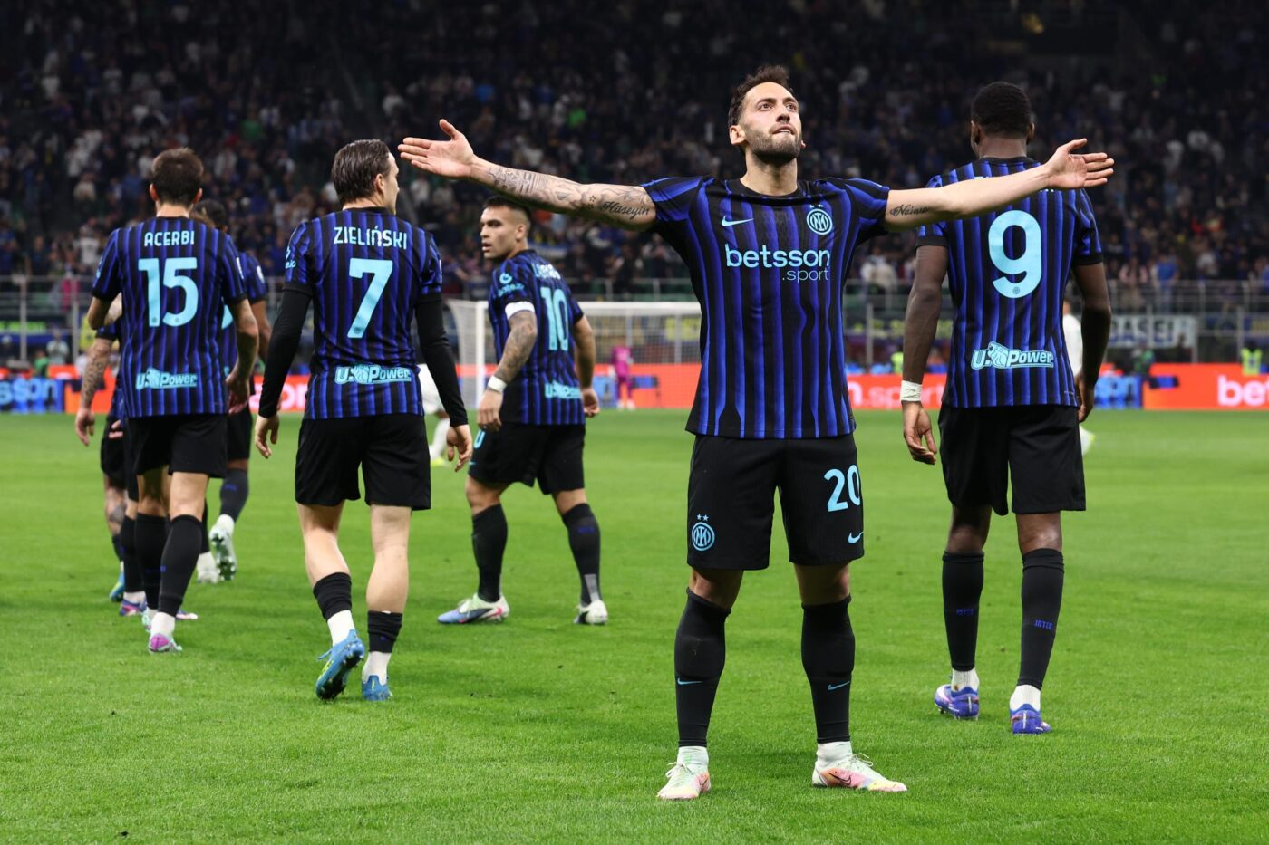 Buts : L. Martínez (2 e et 52 e ), Çalhanoglu (45 e +2), Thuram (55 e ) et Barella (63 e ) pour les Nerazzuri // Mancini (40 e ) et Pellegrini (70 e ) pour les Giallorossi