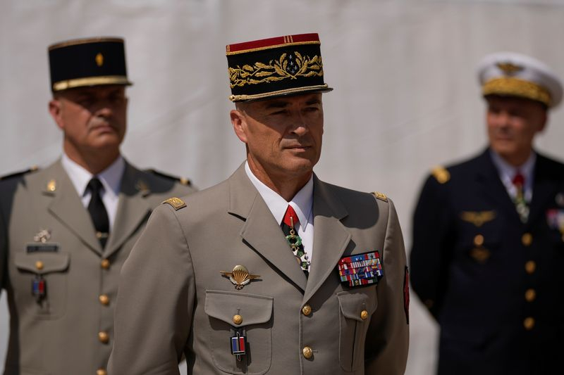 PARIS (Reuters) - Le général Thierry Burkhard prend jeudi ses fonctions de chef d'état-major des armées françaises en remplacement du général François Lecointre, qui occupait le poste depuis 2017 et avait demandé il y a plusieurs mois au chef de l'Etat, Emmanuel Macron, de pouvoir quitter le service actif.