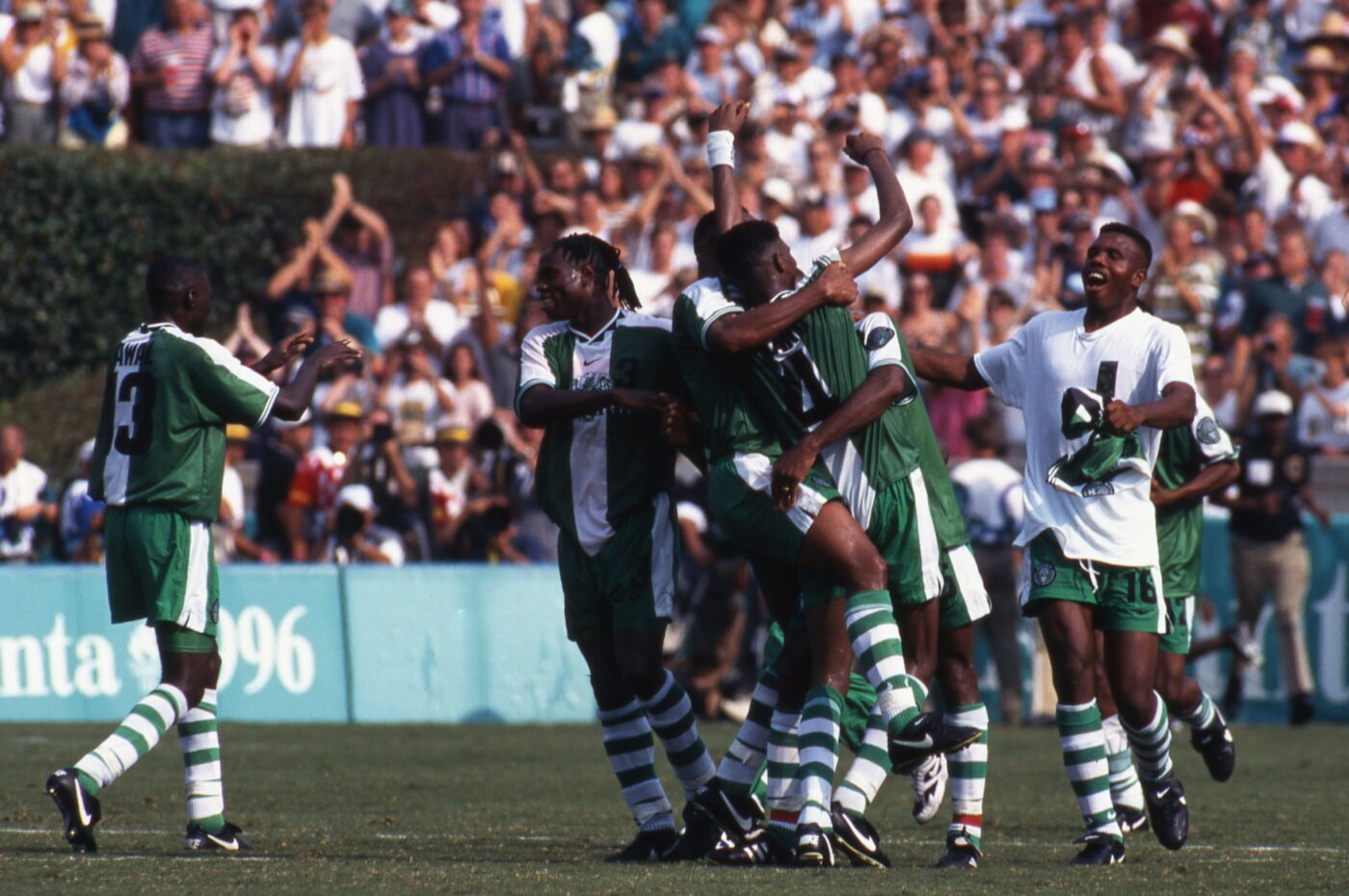 De toutes les grandes générations du football africain, celle du Nigeria des années 1990, couverte d’or aux Jeux olympiques d’Atlanta, est sans doute la plus belle, au point de lui attribuer la première place de notre top 50 des sélections africaines de l’histoire. Problème : ses succès coïncident avec les pires années du régime dictatorial de Sani Abacha, dont une bonne partie des Super Eagles fréquentait les chaudes soirées.