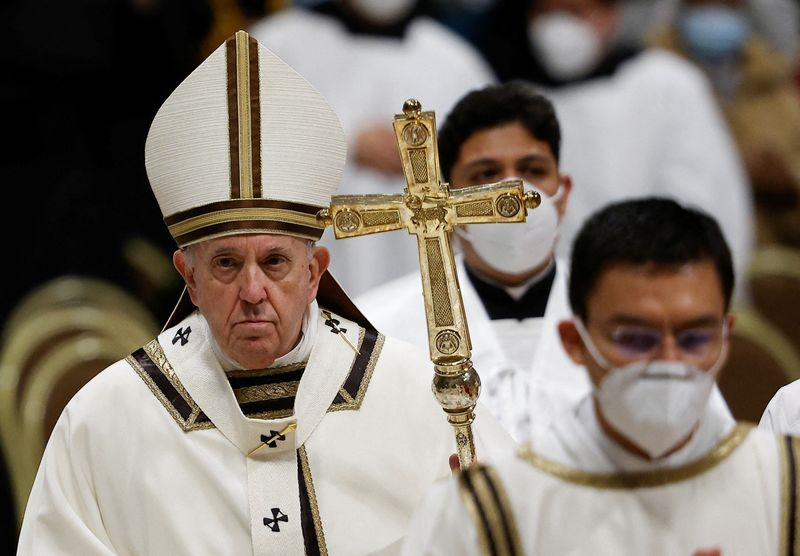 VATICAN (Reuters) - Le pape François, a déclaré vendredi que les personnes indifférentes aux pauvres offensent Dieu, et a exhorté les fidèles à "regarder au-delà de toutes les lumières et décorations" et à se souvenir des plus démunis, lors de la traditionnelle messe de minuit.