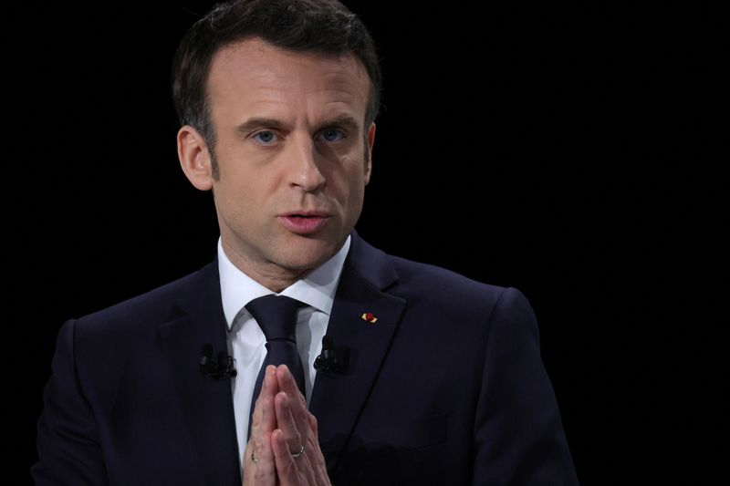 PARIS (Reuters) - Emmanuel Macron, candidat à un second mandat présidentiel en avril, a dévoilé jeudi les grands axes de son programme lors d'une conférence de presse à Aubervilliers (Seine-Saint-Denis).