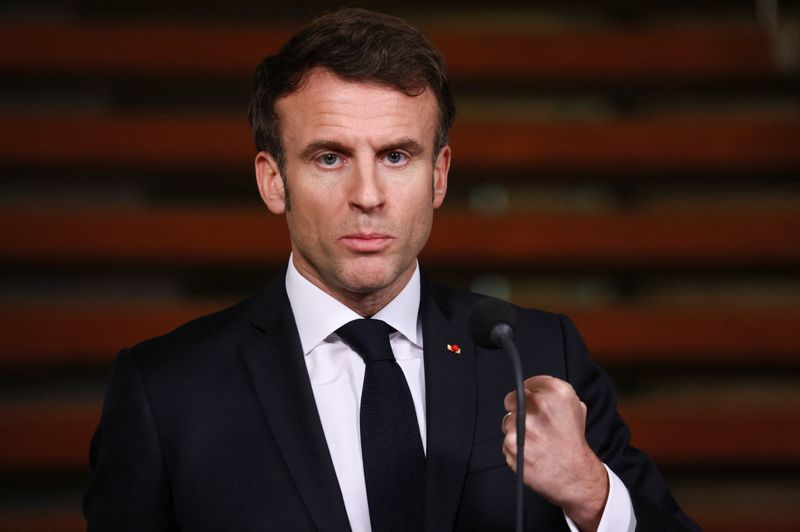 (Reuters) - Le président français Emmanuel Macron a déclaré lundi que rien n'était exclu pour l'aide militaire à l'Ukraine, alors que certains représentants occidentaux ont évoqué l'hypothèse de fournir à Kyiv des avions de chasse dans la guerre qui l'oppose à la Russie depuis près d'un an.