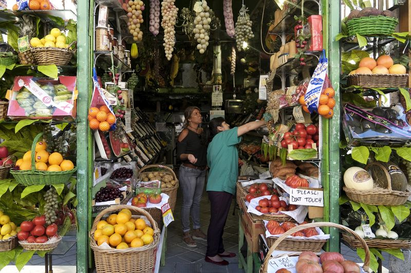 Une femme fait ses courses dans une épicerie à Madrid