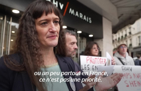 L'association de lutte contre les violences faites aux enfants Mouv'Enfants a manifesté lundi devant le BHV à Paris après avoir découvert la vente de poupées à caractère pédopornographique sur la +marketplace+ de Shein.