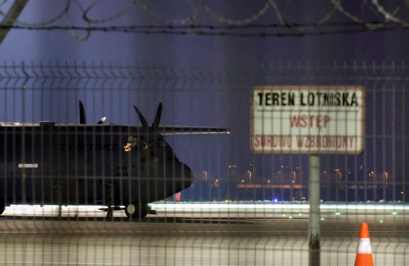 Un petit avion transportant ce qu'une source militaire polonaise a décrit comme du personnel américain a atterri dans la matinée à l'aéroport de Rzeszow-Jasionka tandis que les préparatifs se poursuivaient sur la base située près de la frontière entre la Pologne et l'Ukraine.