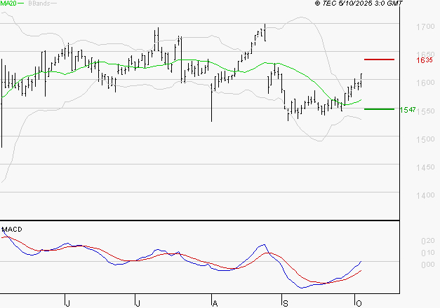 Le titre est en phase de reprise technique. Il est au-dessus de sa moyenne mobile à 50 jours. Le support est à 15.47 EUR, puis à 15.11 EUR; la résistance est à 16.35 EUR, puis à 16.53 EUR.