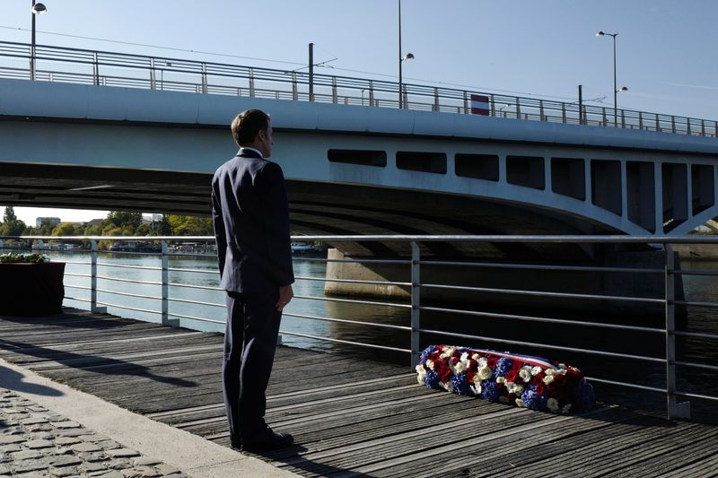 PARIS (Reuters) - Emmanuel Macron a participé samedi à une commémoration de la répression violente d'une manifestation organisée à Paris le 17 octobre 1961 par la branche française du Front de libération nationale (FLN) algérien, le chef de l'Etat reconnaissant que des "crimes (...) inexcusables pour la République" ont été commis à cette occasion.