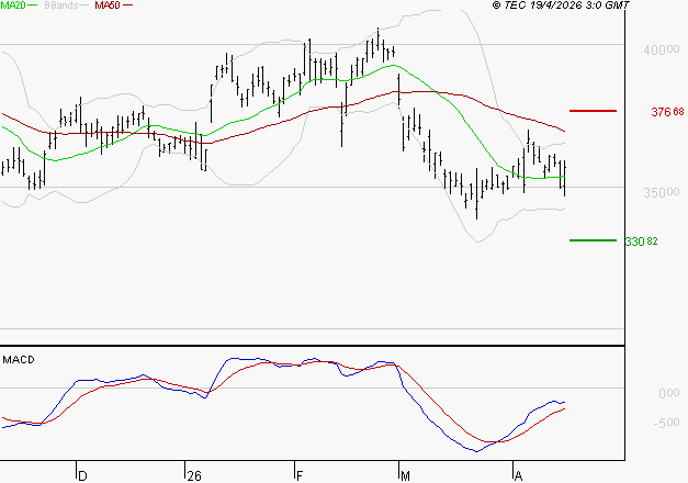Le MACD est négatif, mais il se situe au-dessus de sa ligne de signal : la tendance est en train de changer. Maintenant, le MACD doit franchir zéro pour que la hausse se poursuive dans les jours à venir. L'indicateur principal de la force du mouvement (RSI) montre que la situation technique est assez saine car il n'y a pas de surachat. Les indicateurs stochastiques ne donnent pas de signaux clairs pour les jours à venir. Les volumes échangés sont supérieurs à la moyenne des volumes sur les 10 derniers jours.