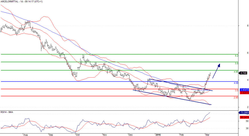 La tendance reste positive sur Arcelormittal information fournie par Le Revenu 07/03/2016 à 09:45