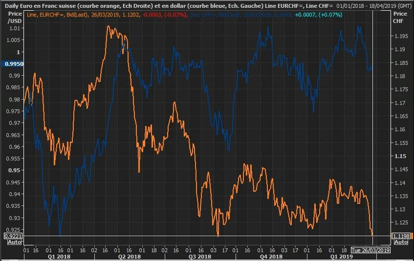 Le franc suisse en zone dangereuse information fournie par Reuters 27/03/2019 à 16:20