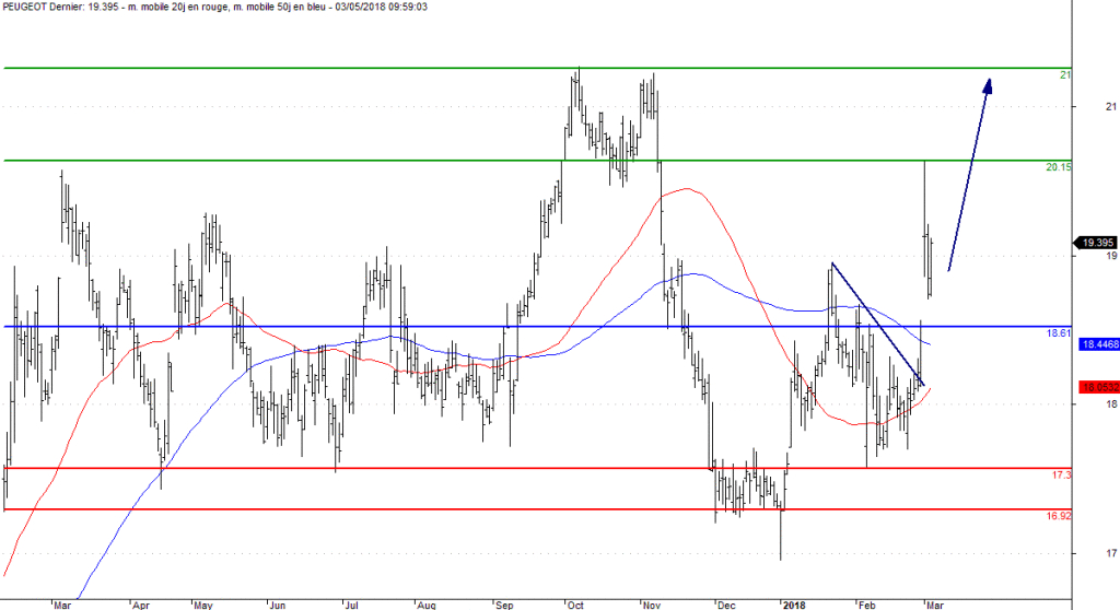 Peugeot continue sa route vers 21 euros information fournie par Le Revenu 05/03/2018 à 10:24