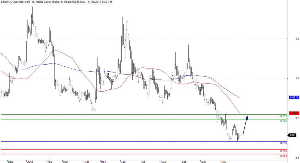 À court terme, le scénario graphique de l'action du groupe papetier est haussier, avec un support à 0,63 euro. Au-dessus de ce niveau, le titre Sequana peut viser un premier objectif à 0,78 euro. S'il le franchit, une deuxième résistance est située un peu plus haut, à 0,81 euro.