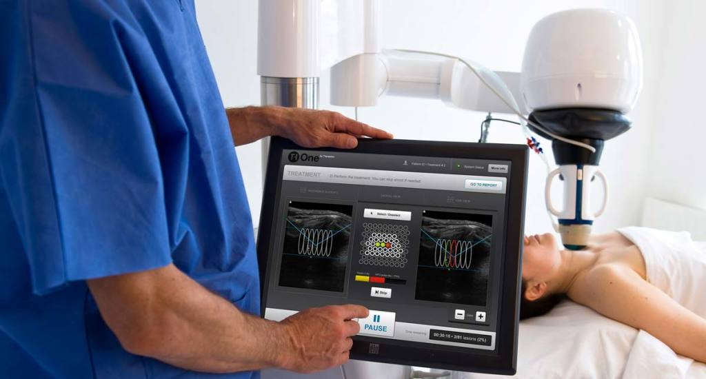 Celles-ci proviennent de l’hôpital universitaire de Sofia, en Bulgarie, où 20 patientes ont été traitées pour des fibroadénomes du sein (des tumeurs bénignes) avec Echopulse, l’appareil d’échothérapie (ultra-sons focalisés sous guidage échographique) mis au point et commercialisé par Theraclion.