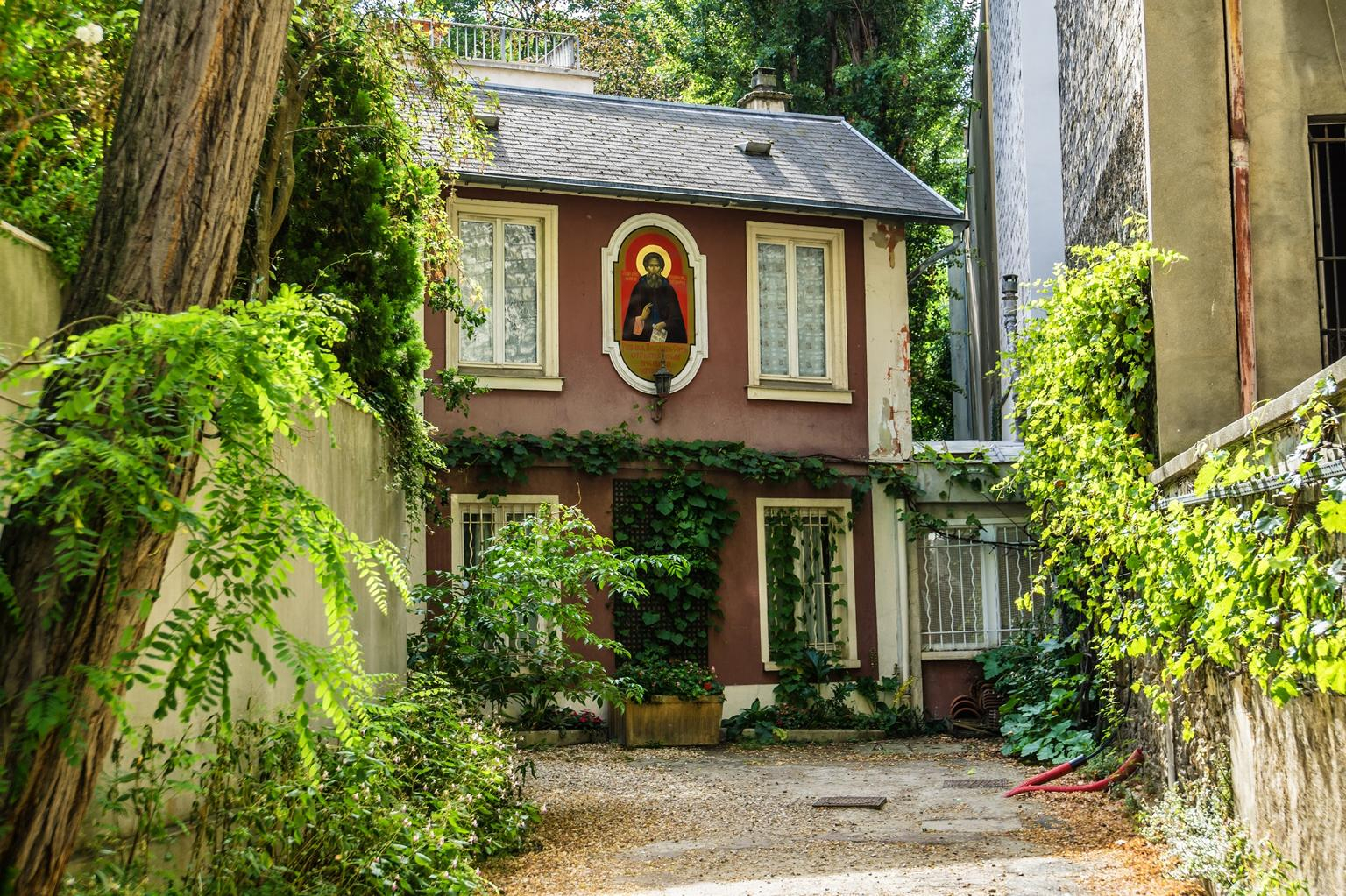 La Russie s'invite à Paris et plus particulièrement la religion orthodoxe. Derrière la grille du 93, rue de Crimée dans le 19e se trouve l'église russe orthodoxe Saint-Serge de Radonège. Plus qu'un édifice religieux, il s'agit d'un institut théologique où prêtres, évêques et spécialistes de la religion orthodoxe se rassemblent. Le bâtiment s'ouvre sur un porche coloré en bois agrémenté de motifs typiques rappelant ceux des isbas. À l'intérieur sont accrochées des peintures du Russe Dmitri Semionovitch Stelletsky dans le style néo-gothique russe. L‘institut possède également une bibliothèque riche d'un fonds d'ouvrages en russe, français, grec, serbe, allemand et anglais, soit plus de 35.000 volumes.