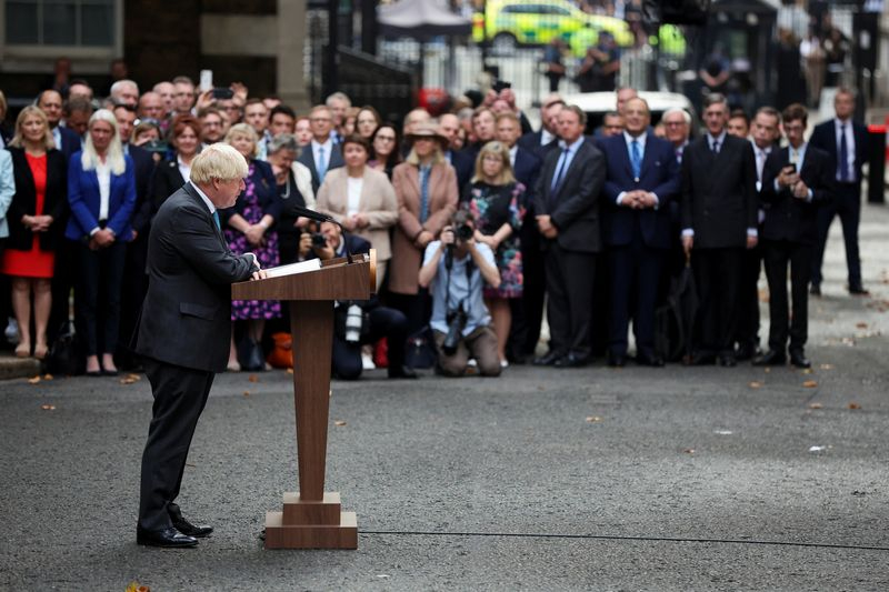 LONDRES (Reuters) - Boris Johnson s'est comparé mardi à une "fusée d'appoint" qui a rempli sa mission, la mise en oeuvre du Brexit, avant de céder sa place à la nouvelle cheffe du Parti conservateur Liz Truss au poste de Premier ministre du Royaume-Uni.