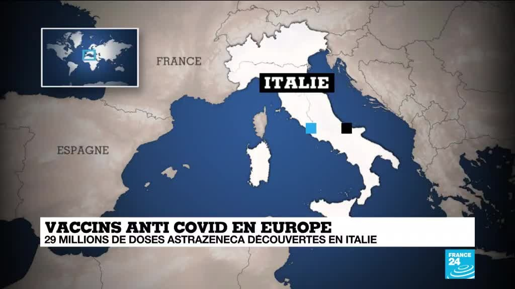 29 millions de doses de vaccin AstraZeneca découvertes en Italie information fournie par France 24 24/03/2021 à 17:54
