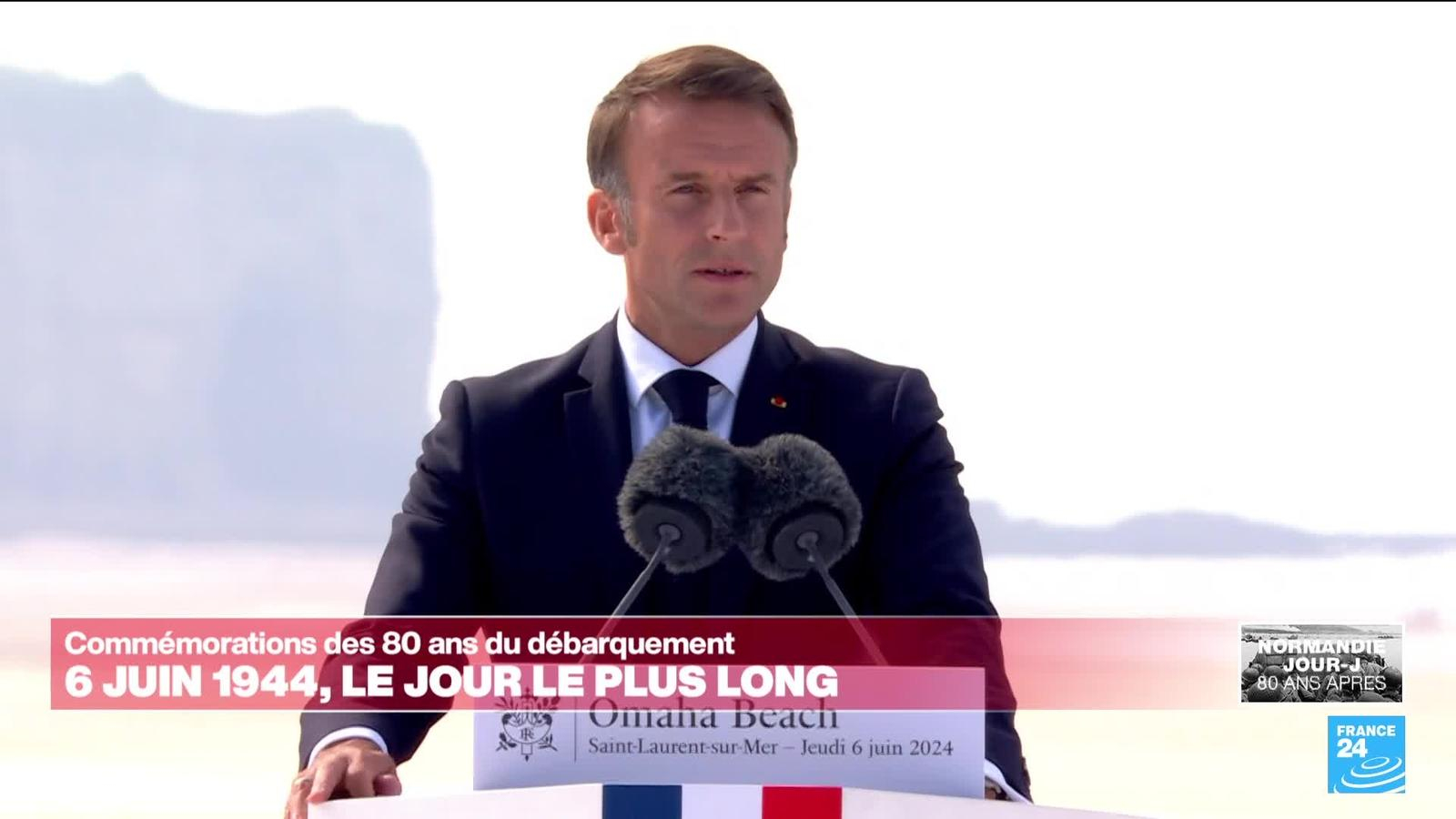 80 ans du D-Day : discours d'Emmanuel Macron lors de la cérémonie internationale à Omaha Beach information fournie par France 24 06/06/2024 à 18:23