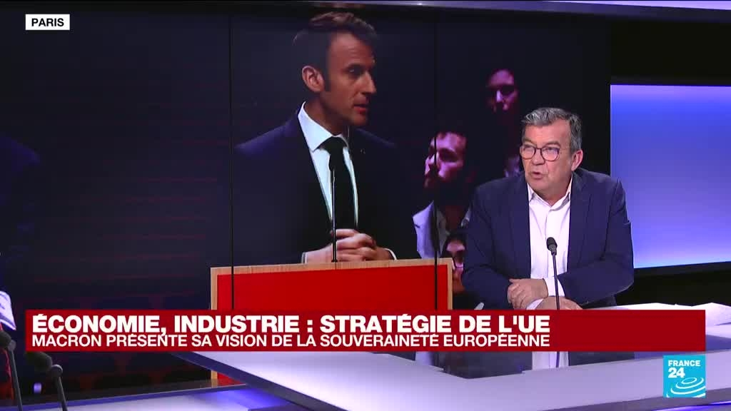 Le président français Emmanuel Macron a été interrompu mardi 11 avril à La Haye par des manifestants qui l'ont interpellé sur la "démocratie". Après cet incident, il a présenté sa vision de la souveraineté économique et industrielle de l'Europe, ainsi que sa "sécurité économique", dans le prolongement de son discours de La Sorbonne en 2017.