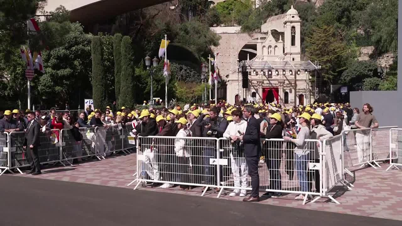 Près de l'Église Sainte-Dévote, des fidèles tentent d'apercevoir le pape en visite dans la principauté catholique de Monaco. IMAGES