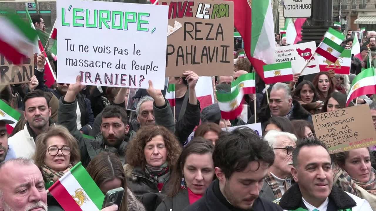 Des soutiens de Reza Pahlavi, fils de l'ancien chah d'Iran qui vit aux Etats-Unis, manifestent à Paris, alors que plusieurs milliers de personnes ont déjà défilé la veille en France à l’appel de différents collectifs pour afficher leur solidarité avec le mouvement qui a défié le pouvoir iranien et été visé par une répression qui a fait des milliers de morts. IMAGES