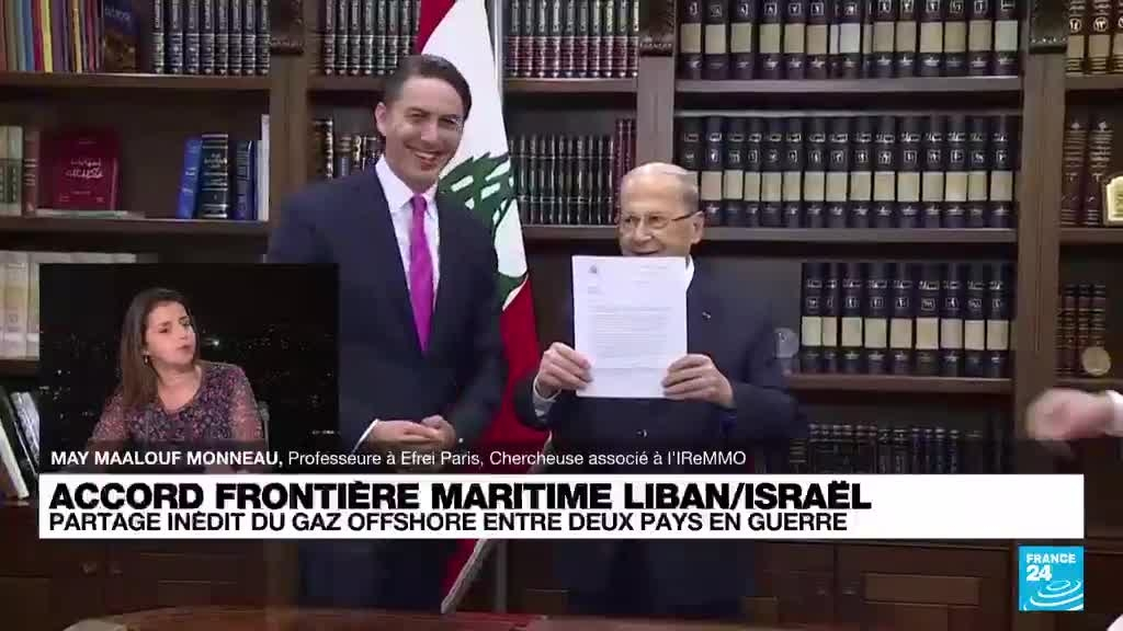 L’accord de délimitation de la frontière maritime entre Israël et le Liban, deux pays ennemis a été signé ce jeudi après des mois de négociations par l'entremise des Etats-Unis. Cette frontière répartie les gisements gaziers offshore en Méditerranée orientale. "A qui profitera cette manne gazière" ? Selon May Maalouf Monneau, politologue, spécialiste du Moyen-Orient et professeur des grandes écoles à Paris, invitée de France 24, "ça peut faire sortir les deux pays d’une inégalité diplomatique que l’on traîne depuis 1983 avec le fameux accord du 17 mai 1983 qui était économiquement catastrophique pour le Liban donc ça met quelque chose de nouveau dans les relations entre les deux pays". Analyse.