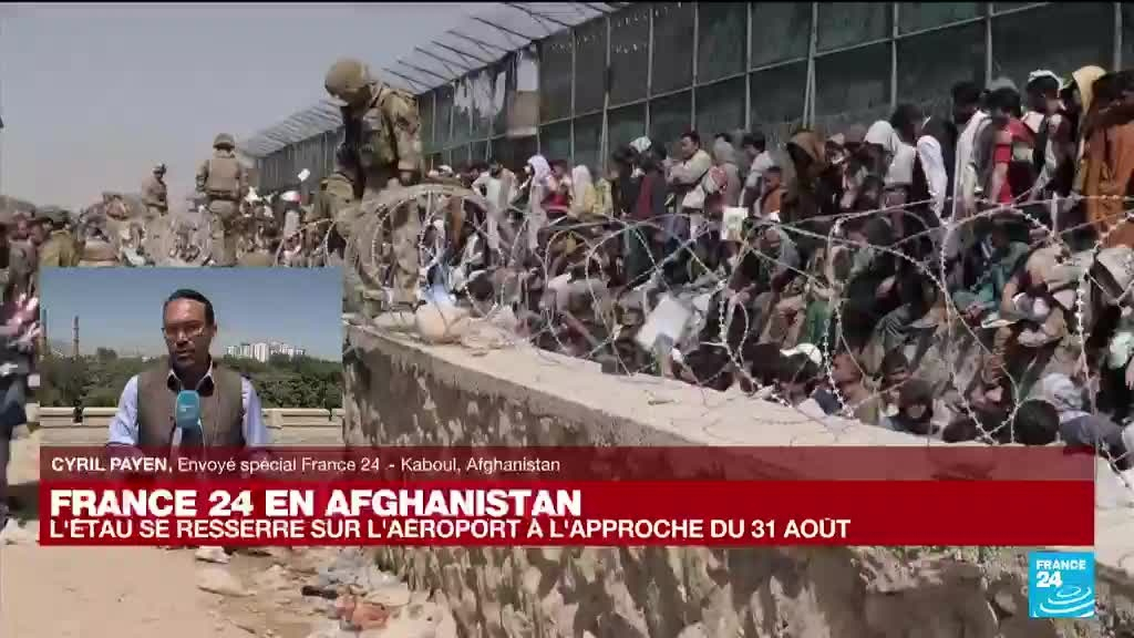 Depuis la prise de pouvoir des talibans le 15 août, des dizaines de milliers de personnes ont assiégé dans une anarchie totale l'aéroport de la capitale, tentant, souvent en vain, de monter à bord d'un des vols d'évacuation mis en place par les Etats-Unis et leurs alliés. Les précisions de Cyril Payen, envoyé spécial France 24 à Kaboul.