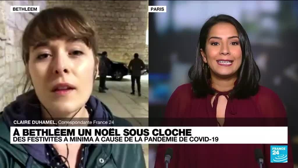 Sur la place de la Mangeoire de Bethléem, les quelques bonnets de père Noël et le son des tambours rappellent qu'aujourd'hui, c'est jour de fête. Mais la foule est clairsemée car cette année encore, le coronavirus vient gâcher les festivités du 24 décembre. Claire Duhamel, correspondante FRANCE 24 est en direct de Bethléem.