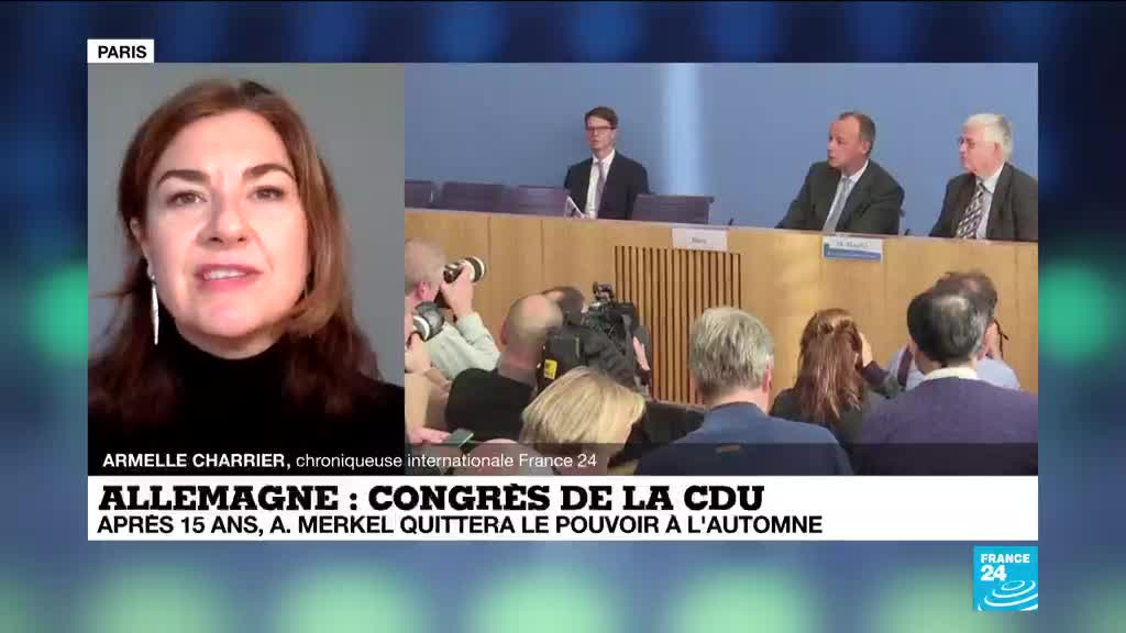 Trois hommes pour un fauteuil: le parti chrétien-démocrate de la chancelière allemande, la CDU, élit samedi son président, un scrutin-clé à neuf mois de la fin de l'ère Angela Merkel. Les explications d'Armelle Charrier, chroniqueuse internationale à France 24.