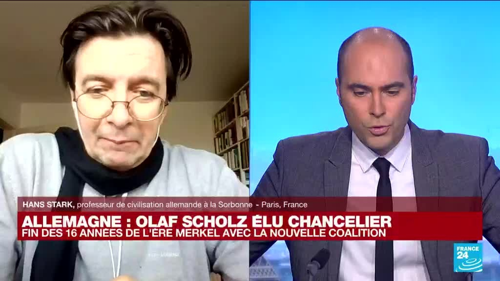 Une page se tourne en Allemagne, où le style Merkel laisse la place au style Scholz. Climat, économie, construction européenne, diplomatie et lutte contre le Covid, les chantiers sont immenses pour le nouveau chancelier, qui prend officiellement ses fonctions mercredi 8 décembre. Hans Stark, professeur de civilisation allemande à la Sorbonne, était l'invité de France 24 pour analyser ce passage de flambeau.