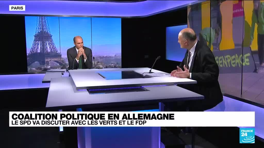 Olaf Scholz, le chef de file des sociaux-démocrates allemands arrivés en tête des élections législatives, a assuré mercredi avoir "un mandat" pour former une coalition gouvernementale avec les Verts et les libéraux du FDP. Gauthier Rybinski, chroniqueur international FRANCE 24 explique pourquoi cette coalition serait inédite.