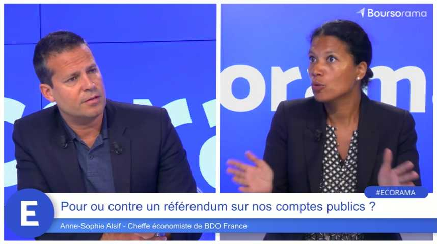 La proposition de référendum sur les finances publiques par François Bayrou suscite le débat. Est-ce une bonne idée de demander l'avis du peuple français ? Pour répondre à cette question, Anne-Sophie Alsif, cheffe économiste de BDO France, était l'invitée de l'émission Ecorama du 5 mai 2025, présentée par David Jacquot sur Boursorama.com.