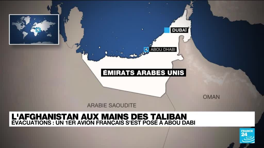 Le premier avion évacuant des Français et certains Afghans de Kaboul tombée aux mains des talibans est arrivée mardi matin aux Émirats arabes unis, a annoncé la ministre des Armées Florence Parly. Avec ce premier vol, "nous avons posé les bases d'un pont aérien entre Kaboul et les Émirats arabes unis", où la France dispose d'une base militaire, la Base aérienne 104 d'Al Dhafra. Notre Envoyé spécial pour FRANCE 24, Cyril Payen, raconte depuis Dubaï.
