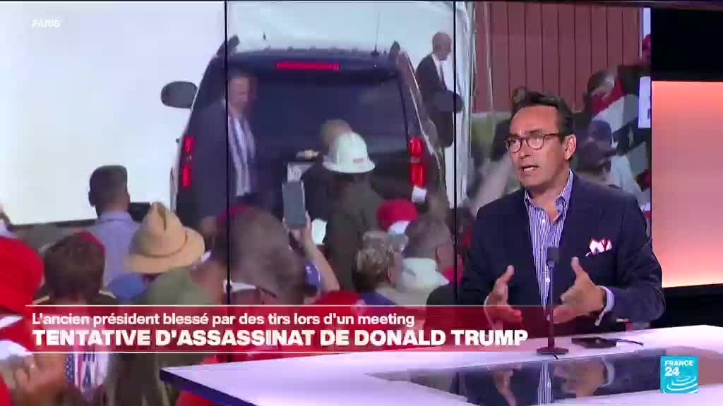 L'ex-président américain Donald Trump a été blessé à l'oreille lors d'une apparente tentative d'assassinat par balle au cours d'un meeting samedi, qui bouleverse une campagne présidentielle déjà sous haute tension. Donald Trump est en bonne santé, et l'heure est désormais à l'analyse politique, notamment sur le tournant que cette attaque pourrait représenter dans cette campagne, mais aussi sur le symbole que représente ce poing levé de Trump, avec son visage ensanglanté. Éléments d'analyse avec le journaliste de France 24 Cyril Payen.