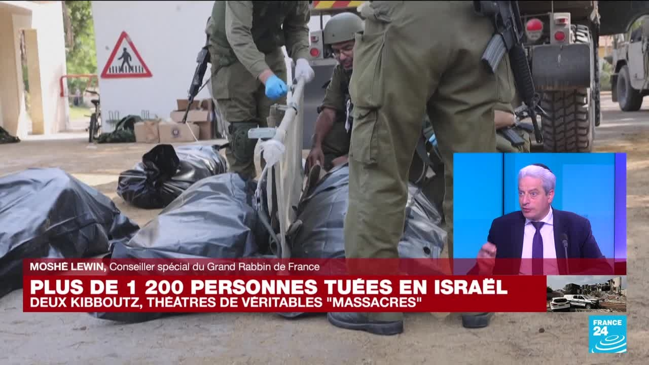 Israël est sous le choc après l'offensive majeure lancée samedi 7 octobre par le Hamas, qui a fait au moins 1 200 morts en Israël, l'attaque la plus meurtrière de l'histoire du pays en 75 ans. Moshe Lewin, conseiller spécial du Grand Rabbin de France, était sur le plateau de France 24 pour réagir à ces attaques.