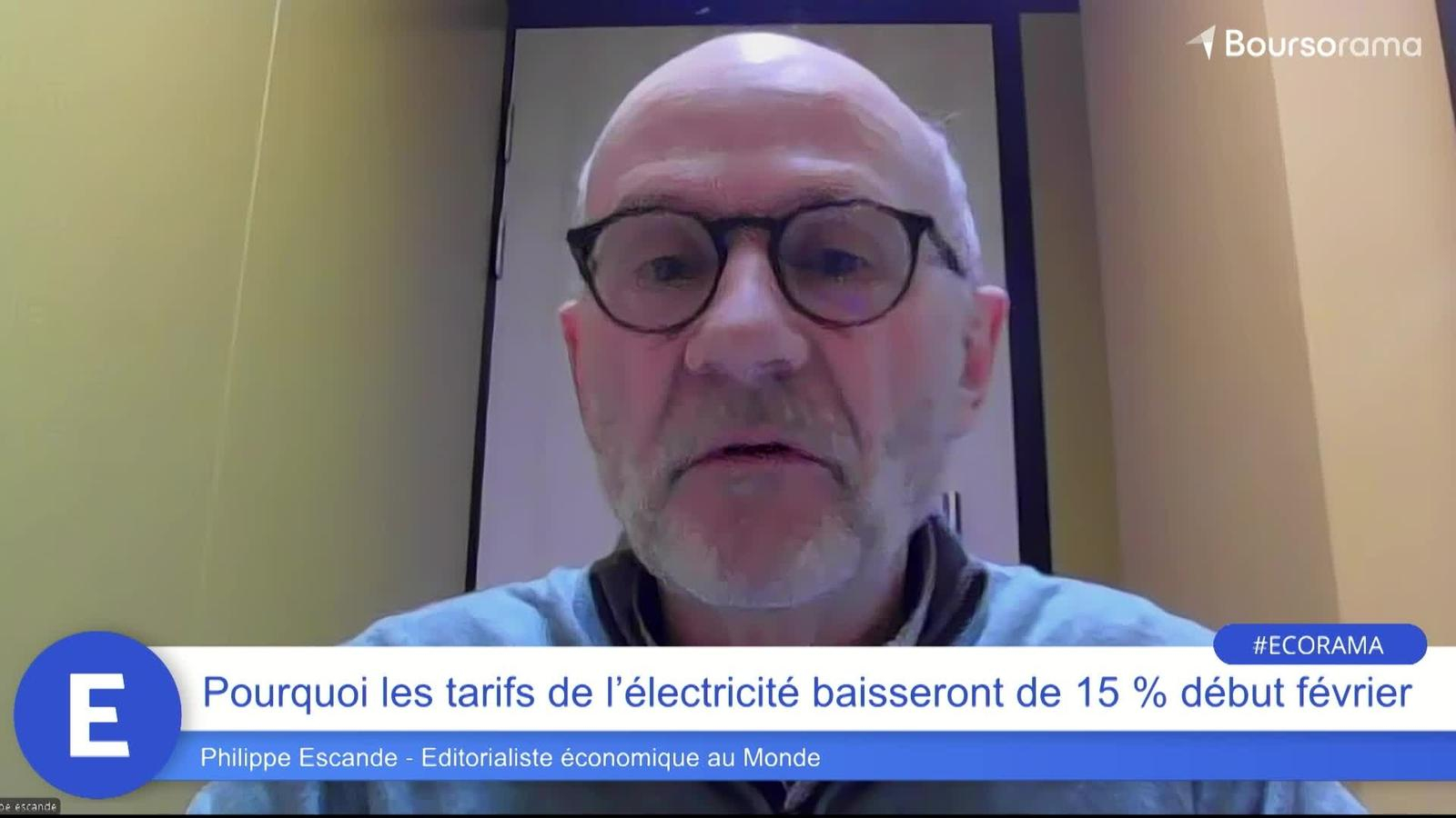 Les tarifs d'électricité encadrés par l'Etat vont baisser pour la première fois depuis 10 ans et dans des proportions inédites. Une facture en baisse de 15% le 1er février prochain, contre 14% initialement prévue. Qui sera concerné ? L'électricité reviendra-t-elle à son plus bas niveau ? Réponse avec Philippe Escande, éditorialiste économique au Monde. Ecorama du 17 janvier 2025, présenté par David Jacquot sur Boursorama.com