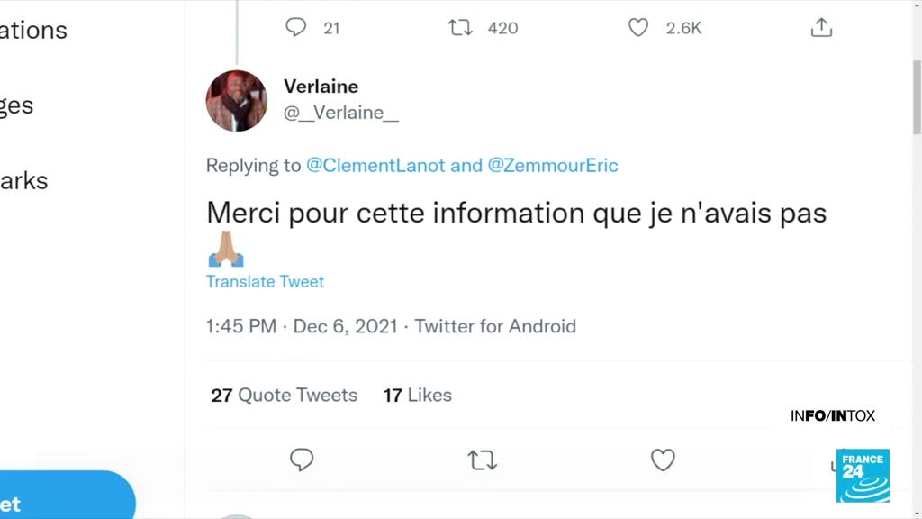 Et aussi, en France, alors que la campagne s'accélère, les fausses informations également. Exemple ici d'une publication liée au premier meeting du candidat Eric Zemmour.