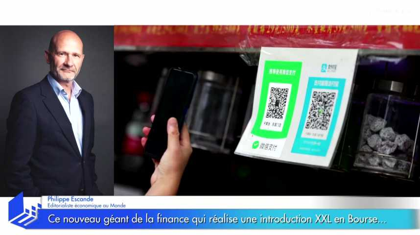 Ant Group, un géant du paiement en ligne (bras financier d'Alibaba) entre en Bourse mardi à Hong Kong. C'est la plus grosse IPO de l'histoire, avec une levée de fonds de 35 milliards de dollars. L'analyse de Philippe Escande, éditorialiste économique au Monde. Ecorama du 30 octobre 2020, présenté par David Jacquot sur Boursorama.com