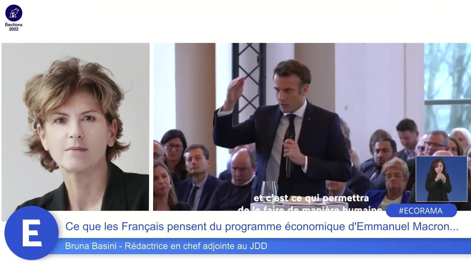 Maintenant que le programme économique d'Emmanuel Macron est connu, qu'en pensent les Français ? Ils semblent plutôt critiques selon le sondage publié par l'institut Elabe pour BFMTV. Les explications de Bruna Basini, rédactrice en chef adjointe au JDD. Ecorama du 23 mars 2022, présenté par David Jacquot sur Boursorama.com