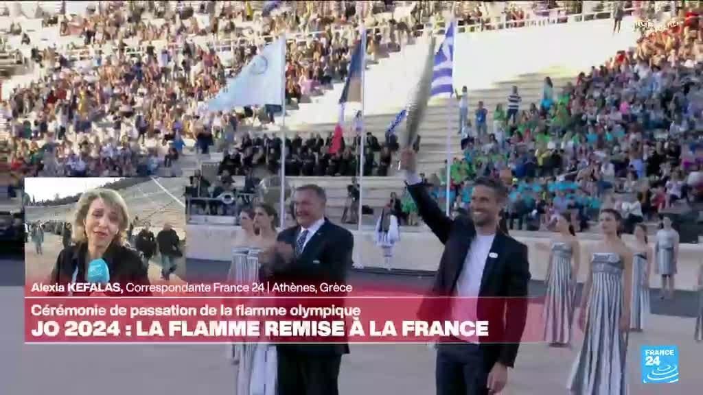 Cérémonie de passation de la flamme olympique information fournie par France 24 27/04/2024 à 10:21