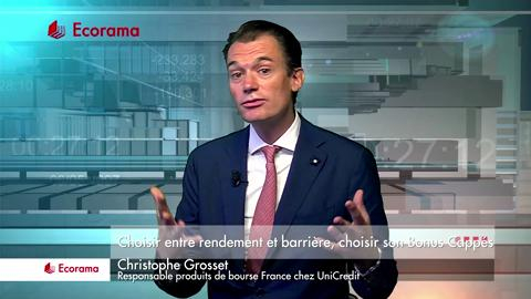 En 90 secondes, Christophe Grosset, responsable produits de bourse France chez Unicredit, nous éclaire sur les certificats Bonus Cappés.